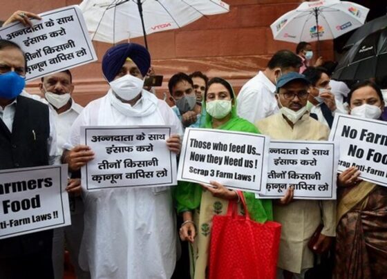 BSP-Akali Dal ने संसद के बाहर किया कृषि कानूनों का विरोध