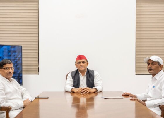 रामअचल राजभर तथा लालजी वर्मा की सपा अध्यक्ष अखिलेश यादव से मुलाकात