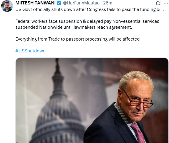 अमेरिका एक बार फिर सरकारी शटडाउन की चपेट में आ गया है. राष्ट्रपति डोनाल्ड ट्रंप की पार्टी को सीनेट में अस्थायी फंडिंग बिल पास कराने के लिए कम से कम ६० वोटों की जरूरत थी, लेकिन सिर्फ ५५ वोट ही जुट पाए. यानी यह प्रस्ताव गिर गया. अब सरकार के पास जरूरी फंडिंग का विस्तार नहीं है और इसका सीधा मतलब है कि इससे कई संघीय कामकाज रुक सकते हैं. अमेरिकी कानून के तहत जब तक बजट या अस्थायी फंडिंग बिल पास नहीं होता, तब तक ‘गैर-जरूरी’ सरकारी विभागों और सेवाओं को बंद करना पड़ता है. इस स्थिति को ही शटडाउन कहा जाता है. पिछले दो दशकों में यह अमेरिका की पांचवीं बड़ी शटडाउन स्थिति बन सकती है.