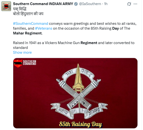 अपनी स्थापना के८४ वर्ष पूरे करने जा रही महार रेजीमेंट के गौरवशाली इतिहास को याद करने के लिए पुरे देश में कार्यक्रमों का आयोजन किया गया है, ताकी आज के युवा वर्ग को इसके प्रति जानकारी हासिल हो सके. इसके अलावा सोशल मीडिया पर लोगों ने अपनी शुभकामनाओं के साथ सन्देश पोस्ट किये हैं.