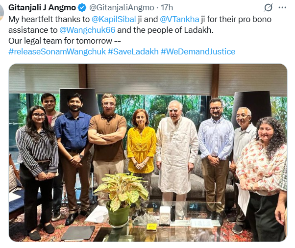 सर्वोच्च न्यायलय में सोनम वांगचुक का पक्ष दृढ़ता से रखने के लिए सोनम की पत्नी गीतांजलि ने कपित सिब्बल और उनकी पूरी टीम का आभार व्यक्त किया. अब अगले मंगलवार इस केस पर सुनवाई होगी.
