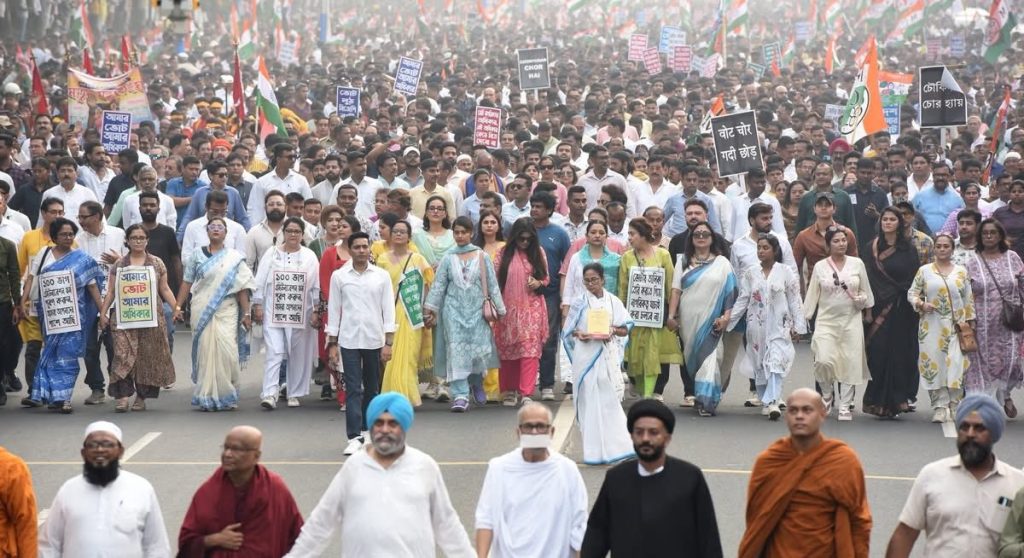 रैली के बाद ममता ने SIR के खिलाफ दूसरी बार सड़क पर उतरकर मतुआ के गढ़ ठाकुरनगर में तीन किलोमीटर लंबे पैदल मार्च का भी नेतृत्व किया।