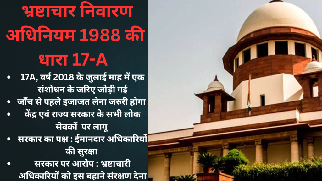 भ्रष्टाचार किसी भी लोकतांत्रिक देश के लिए सबसे बड़ा खतरा होता है. यह केवल आर्थिक नुकसान नहीं करता, बल्कि जनता का भरोसा, शासन की विश्वसनीयता और न्याय व्यवस्था की आत्मा को भी कमजोर करता है. भारत में भ्रष्टाचार को रोकने के लिए कई कानून बनाए गए हैं, जिनमें सबसे महत्वपूर्ण है भ्रष्टाचार निवारण अधिनियम, 1988. इस कानून का उद्देश्य साफ है- सरकारी पदों पर बैठे लोगों को जवाबदेह बनाना और जनता के पैसे तथा अधिकारों की रक्षा करना. लेकिन समय-समय पर इस कानून में ऐसे संशोधन किए गए, जिन पर यह सवाल उठने लगे कि क्या ये वास्तव में भ्रष्टाचार रोकने के लिए हैं या फिर भ्रष्ट लोगों को बचाने के लिए. साल 2018 में इसी कानून में जोड़ी गई धारा 17-A ने पूरे देश में एक नई बहस छेड़ दी. यही धारा एक बार फिर सुप्रीम कोर्ट में विवाद का केंद्र बन गई है.