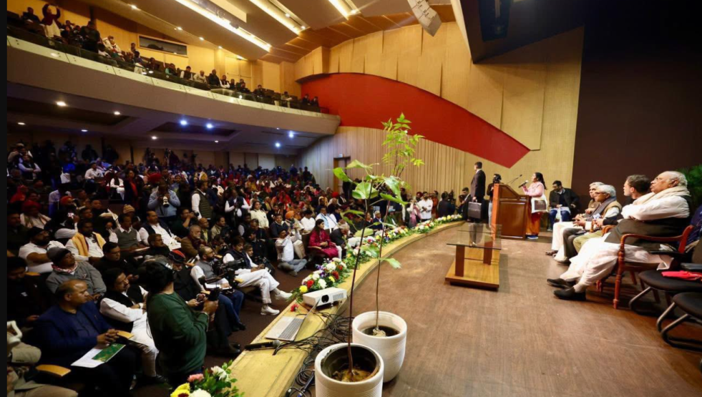 सम्मेलन में देश भर के श्रमिकों ने भाग लिया और अपने कार्यस्थलों से मुट्ठी भर मिट्टी लाकर खड़गे और लोकसभा में विपक्ष के नेता राहुल गांधी की उपस्थिति में प्रतीकात्मक रूप से पौधों में डाली। कांग्रेस ने 10 जनवरी को यूपीए सरकार के महात्मा गांधी राष्ट्रीय ग्रामीण रोजगार गारंटी अधिनियम (मनरेगा) को निरस्त किए जाने के विरोध में 45 दिनी राष्ट्रव्यापी अभियान मनरेगा बचाओ संग्राम की शुरुआत की थी।