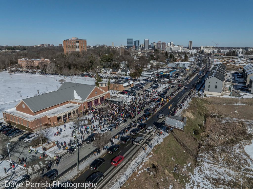 10 फरवरी को सुबह भिक्षु अर्लिंगटन, वर्जीनिया से चेन ब्रिज पार कर वाशिंगटन डीसी में दाखिल हुए। हजारों लोग फूलों, तख्तियों और मौन सम्मान के साथ उनका स्वागत करने पहुंचे। पहला बड़ा कार्यक्रम अमेरिकन यूनिवर्सिटी के बेंडर एरीना में हुआ, जहां लगभग 3500 लोग शांतिपूर्ण माहौल में इकट्ठा हुए।